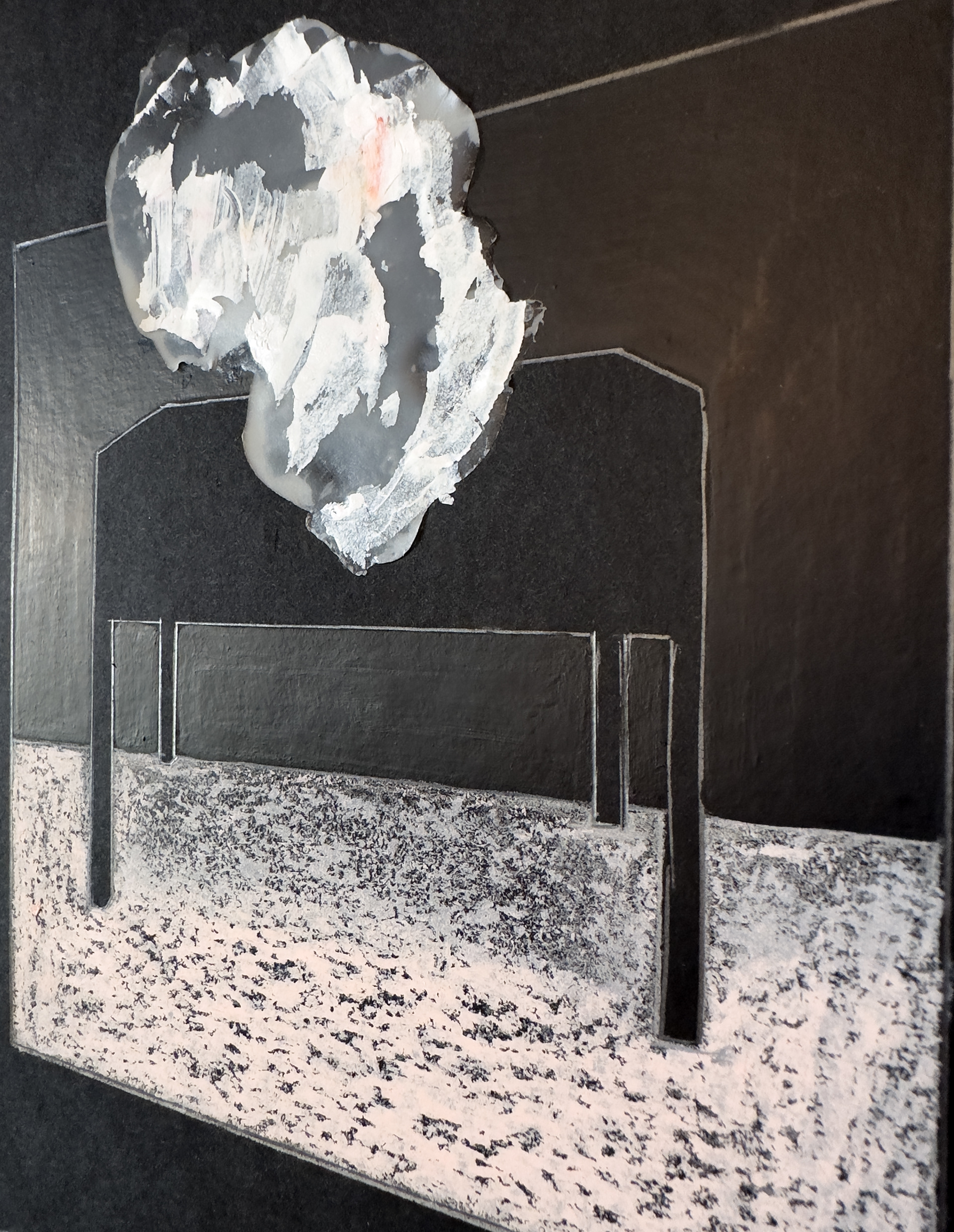 Through layered matte medium, acrylic, gouache, and pencil, the works take up questions about how museums present information, where their funding comes from, and how these choices shape public trust. By unsettling the familiar vitrine form, Museum Discourse asks how museums can respond to urgent environmental issues in ways that feel accountable, relevant, and engaged with the communities they serve.